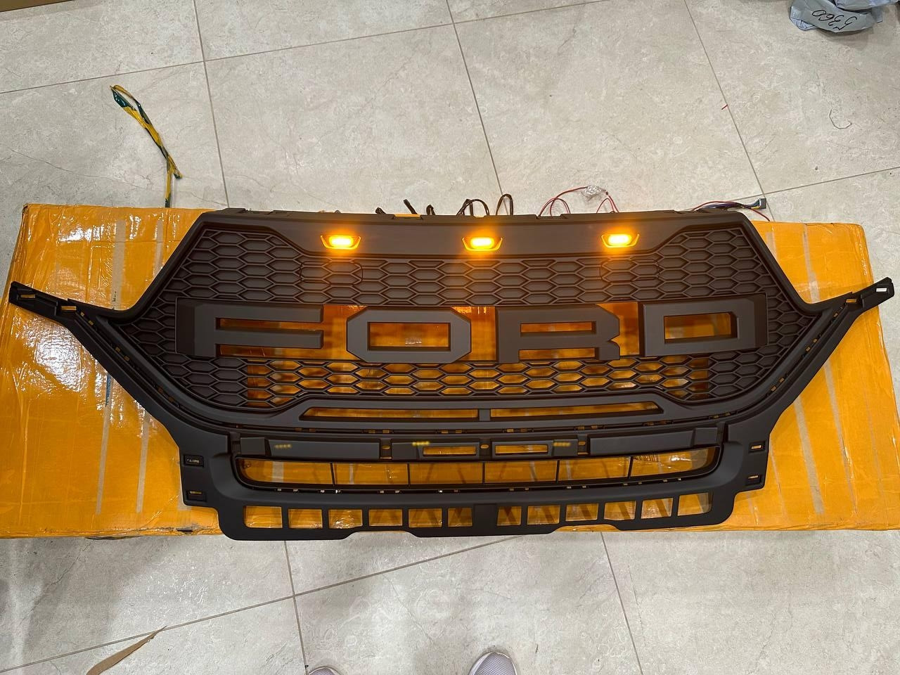 Решітка радіатора в стилі RAPTOR для Ford Explorer 6 чорна матова з помаранчевими габаритами 2018-2022